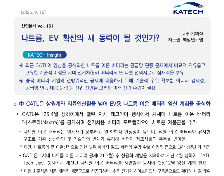 (산업분석 Vol. 151) 나트륨, EV 확산의 새 동력이 될 것인가?