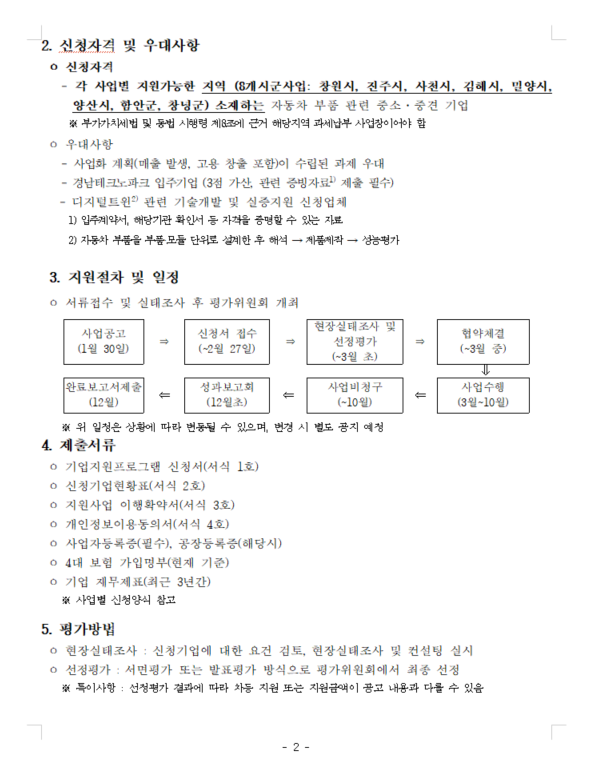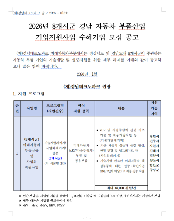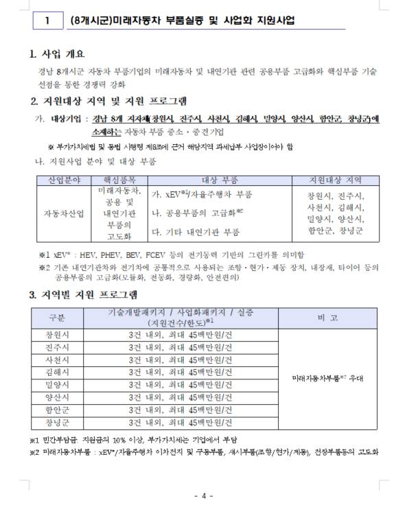 2026년 8개시군 경남 자동차 부품산업 기업지원사업 수혜기업 모집 공고