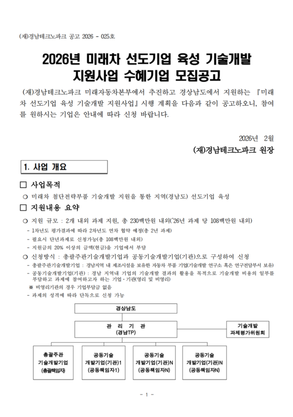 1. 1. (공고문)미래차 선도기업 육성 기술개발 지원사업 지원기업모집 공고.pdf