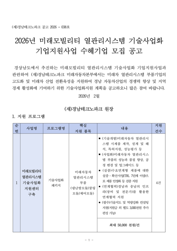 1. 1.(공고문) 2026년 미래모빌리티 열관리시스템 기술사업화 기업지원 수혜기업모집 공고.pdf